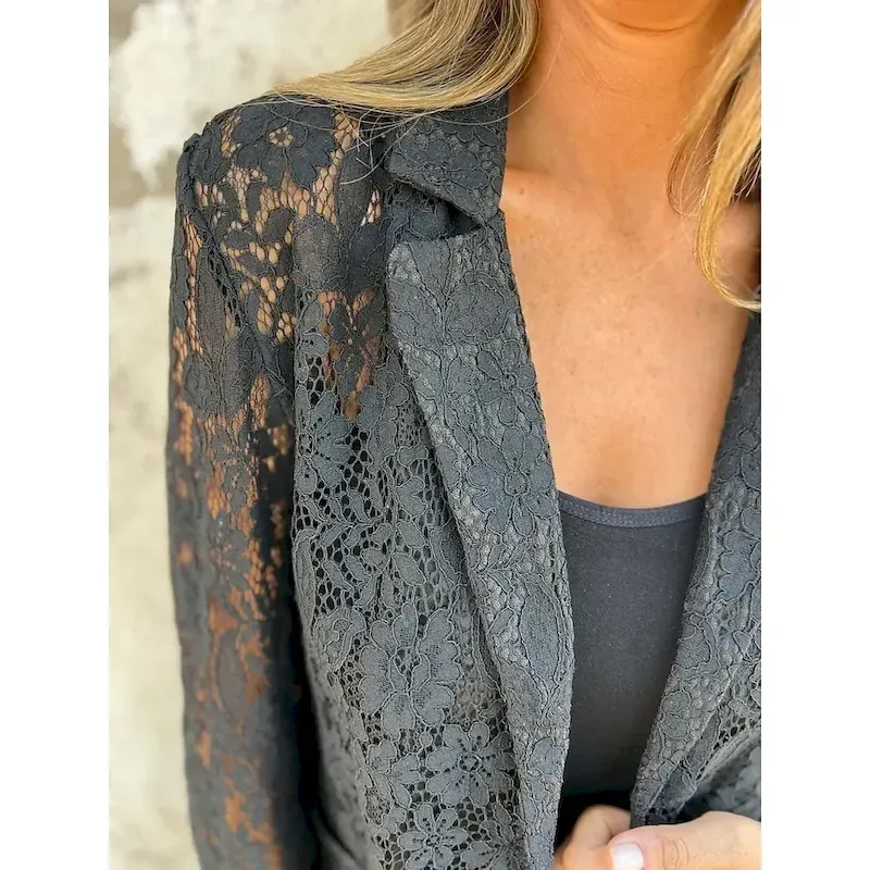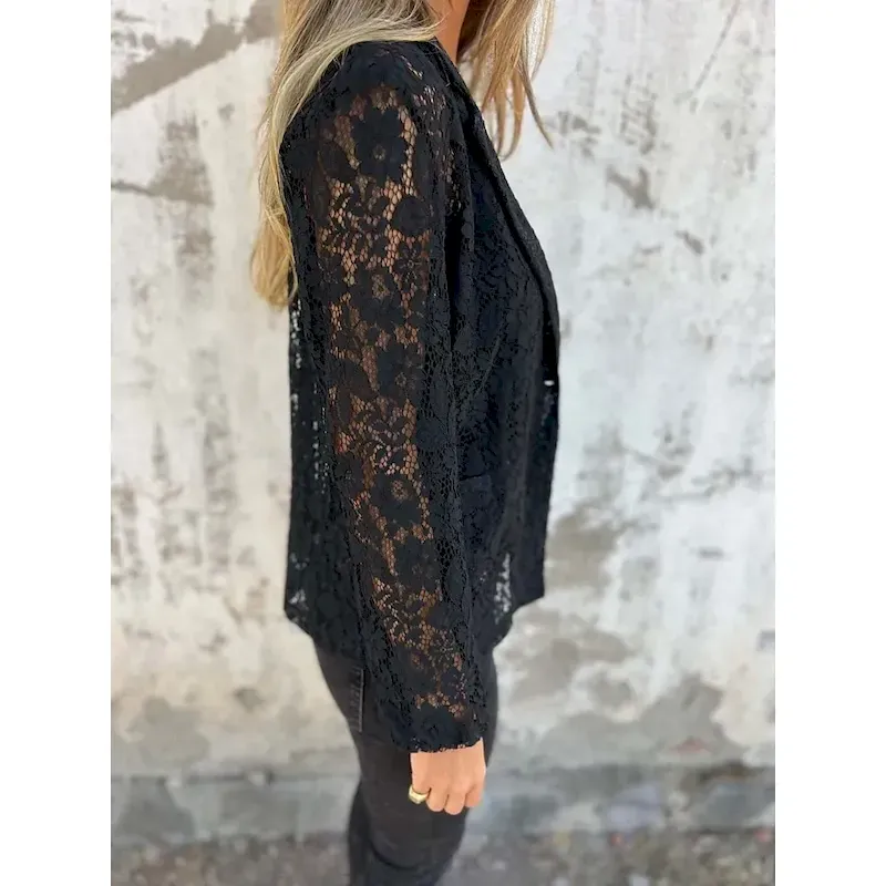 Women’s Blazer Breathable Comfortable Lace Patchwork Casual Plain Office Street Casual Daily Wear Open Front Regular Turndown Regular Fit Long Sleeve Outerwear Black White Summer