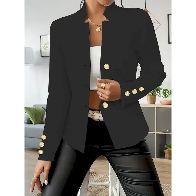 Womens-Blazer-Comfortable-Breathable-Pocket-Buttons-Casual-Sophisticated-Plain-Formal-Vacation-Street-Casual-Single-Breasted-Short-Stand-Collar-Regular-Fit-Long-Sleeve-Outerwear-Black-White-Red