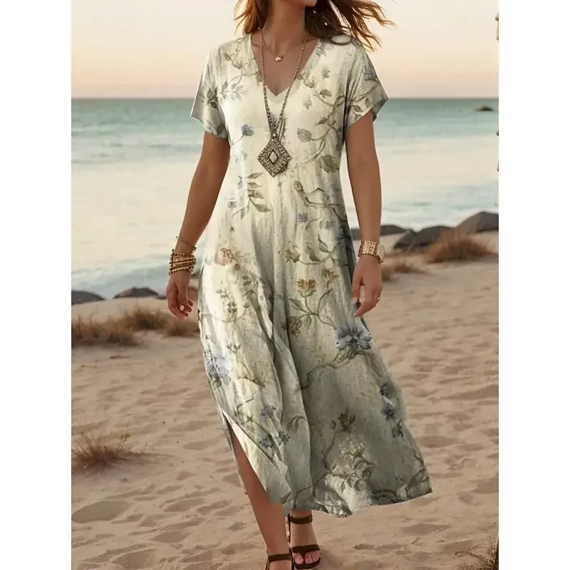 Women’s Maxi Dress Casual Dress A Line Dress Stylish Casual Vacation Daily Regular Fit Floral Short Sleeve V Neck Red Blue Orange Green Summer Spring