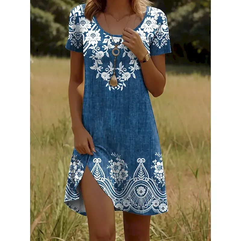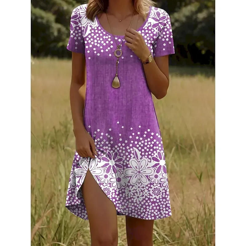 Womens-Mini-Dress-T-Shirt-Dress-Tee-Dress-A-Line-Dress-Summer-Dress-Casual-Holiday-Beach-Regular-Fit-Floral-Graphic-Short-Sleeve-Crew-Neck-Blue-Purple-Green-Dark-Blue-Summer-Spring